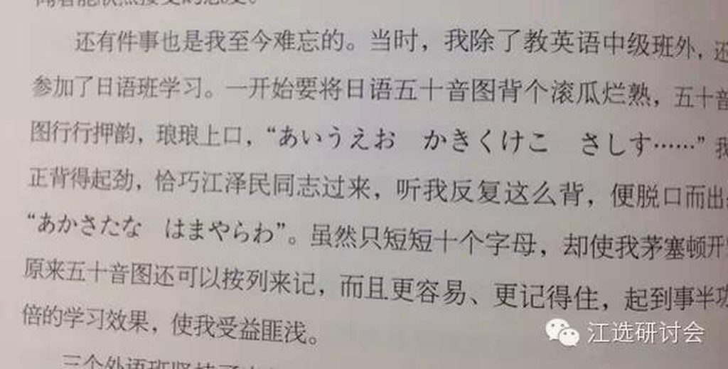 农大校长在一篇文章中曾回忆道,江会见了出席国际农业科技大会的部分外国专家时,英语俄语法语无障碍切换,其中有位专家说了句「江主席您会那么多国外语呀!」听了这句话后,江笑着说道「学外语就要speakmore,我这个人就敢说」天赋、享受学习的乐趣、以及必要的刻苦训练打通了一种良性循环,驱策着江成就了他人认为遥不可及的业绩。