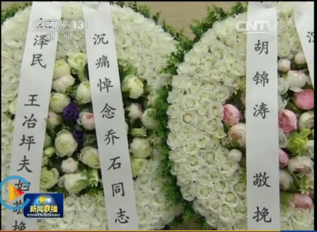 长者今年的三次外地送花圈也是花样虐狗,在万里和乔石的 葬礼上,这外地送来的花圈都写着长者夫妇二人的名字,而旁边 的胡一如既往的严谨,刘永清的名字自始自终没有出现。